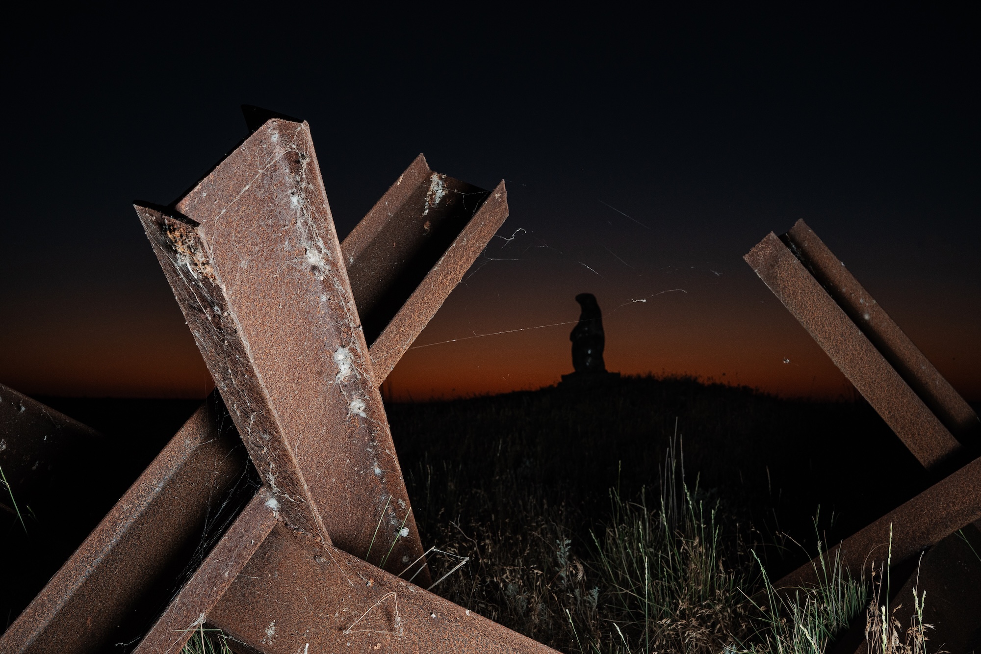 The following night, he showed us where he lives. We go out into the steppe as soon as the air raid siren sounds. In the national park, it is forbidden to spend the night in the bungalow during an air raid, because two outposts in other parks have already been attacked by drones — perhaps the Russians thought that those outposts housed soldiers. That’s why Mykhailovych and his colleagues are not allowed to wear clothes that resemble a military uniform.