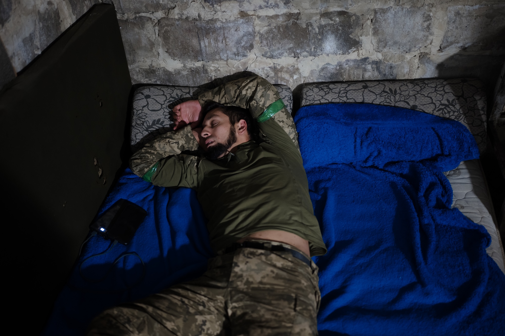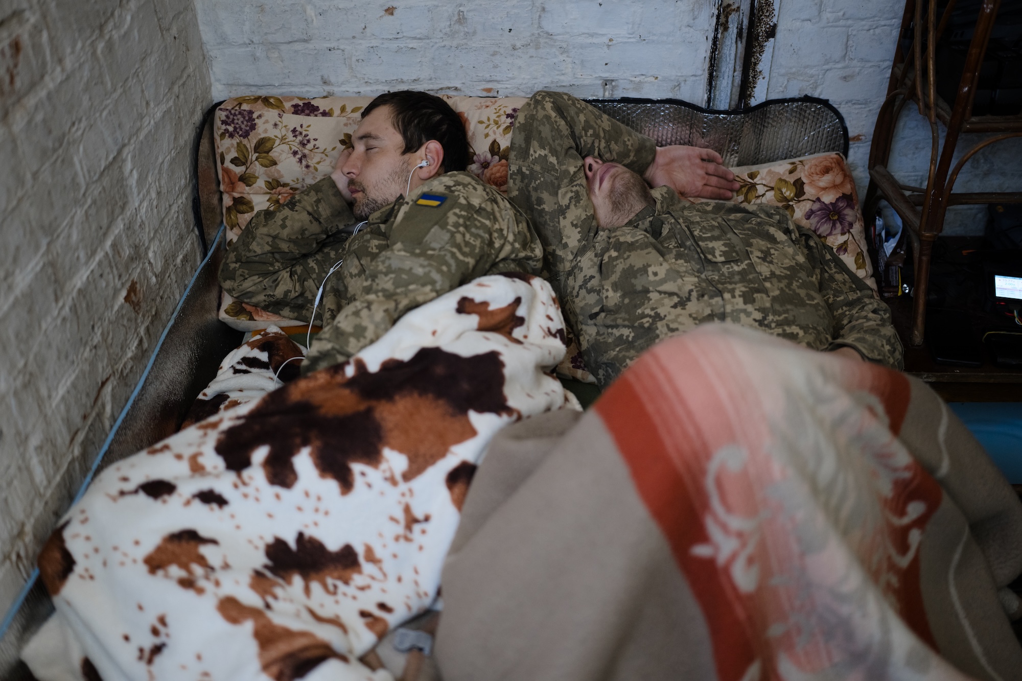 Я багато ночував із військовими вздовж усієї лінії фронту. Іноді це були розкішні бліндажі з двоповерховими ліжками й розкладачками, іноді — крихітні підвали із закрутками, де, у кращому разі, солдату випадало спати просто на землі. Бувало, я займав місце втомлених бійців, які так само прагнули сну. Інколи місця, де можна було бодай трохи відпочити, просто не було, і всі мучилися, дрімаючи по черзі. Військові завжди були гостинними, щедро ділилися їжею й віддавали найкращі місця для сну.