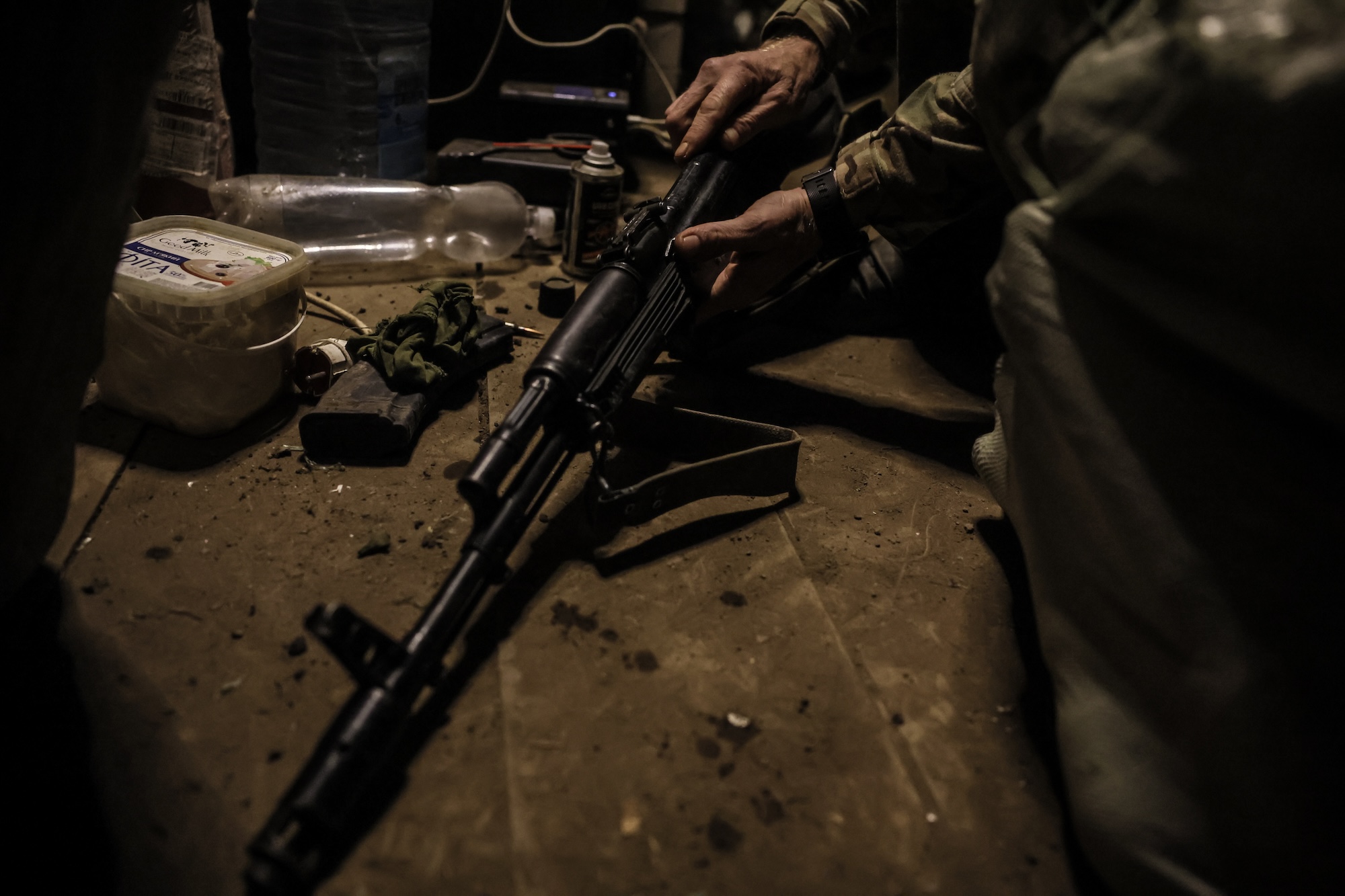 На позиціях мотопіхотного батальйону 24-ї окремої механізованої бригади імені Короля Данила поблизу Часового Яру день і ніч переплітаються з вибухами й короткими хвилинами тиші. Піхотинці тут укріплюються у вузьких проходах між шарами землі й дерева, перепочивають та готуються до бою.